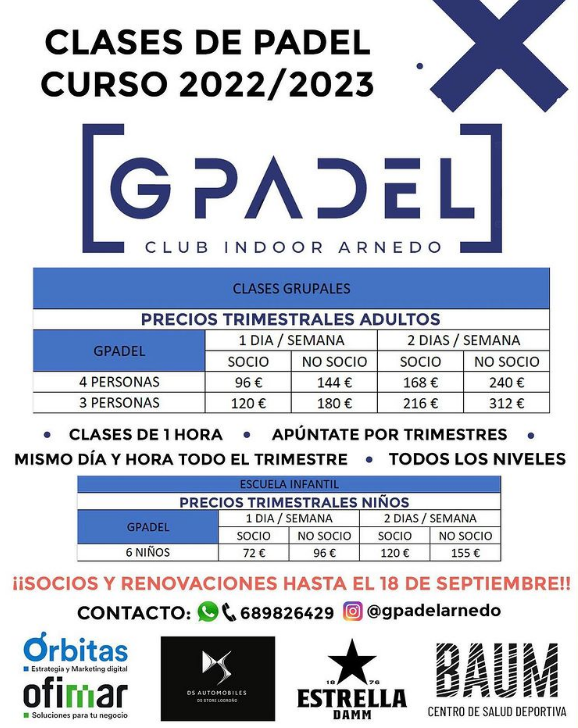 🎾 CLASES DE PÁDEL CURSO 2022/2023 🎾